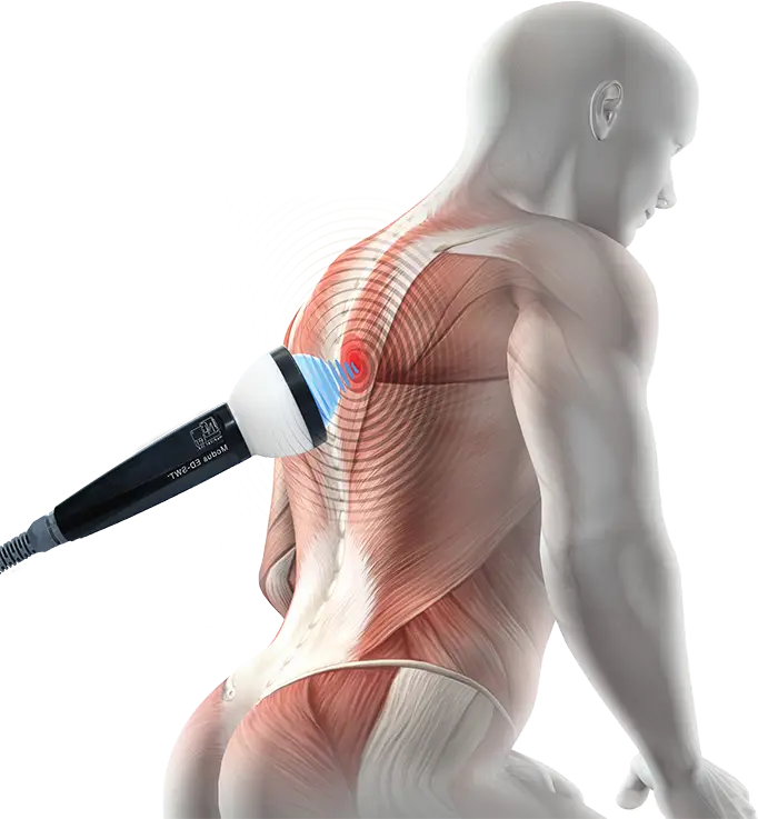 Radial veya Focused Cihazımız ile Şok Dalgalarını ağrılı bölgeye iletirken aplikatörü cilt üzerinde sıkıca ağrılı bölgeye uygulayınız.